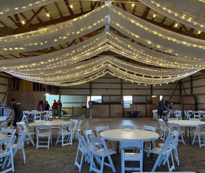 We are Mountain Event Rentals. We specialize in draping, indoor lighting, or under tent lighting! We also offer rentals like tables, chairs, dance floors, tents and more. We strive to make our customers dream come true and aspire to reach their goals on how they imagined their special event to look. The esthetic of our customers events is everything. We are simple and we are available, our inventory of lighting and draping allows us to create beautiful transformations to several customers at once. Our tables and chairs are popular we offer variety of brown, black chairs and our most popular white chairs.