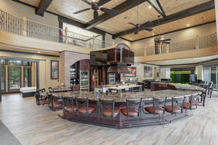 Another great feature of the house is the 3,000 sq. ft. grand kitchen area with a magnificent 2-story-high vaulted ceiling. Coupled with multiple televisions, this area provides plenty of room for large family gatherings or professional presentations. Two family rooms which flank the kitchen add to the palatial-feel of the room. Play on the gorgeous grand piano, open the expansive wall of windows to bring the outdoors inside, or look through two walls of windows to watch your kids play indoor soccer while you prepare lunch! Our indoor turf soccer field is 1,500 sq. ft. and includes an indoor volleyball net. Play soccer, volleyball, or a friendly game of dodgeball. A bleacher area is provided for those who would rather watch. Additional game rooms include ping pong, shuffleboard, and a variety of board games. The massive theater room is complete with large, comfy recliners, a large theater screen, and an X-Box. Sit back, put your feet up, and enjoy streaming your favorite movies on the big screen.